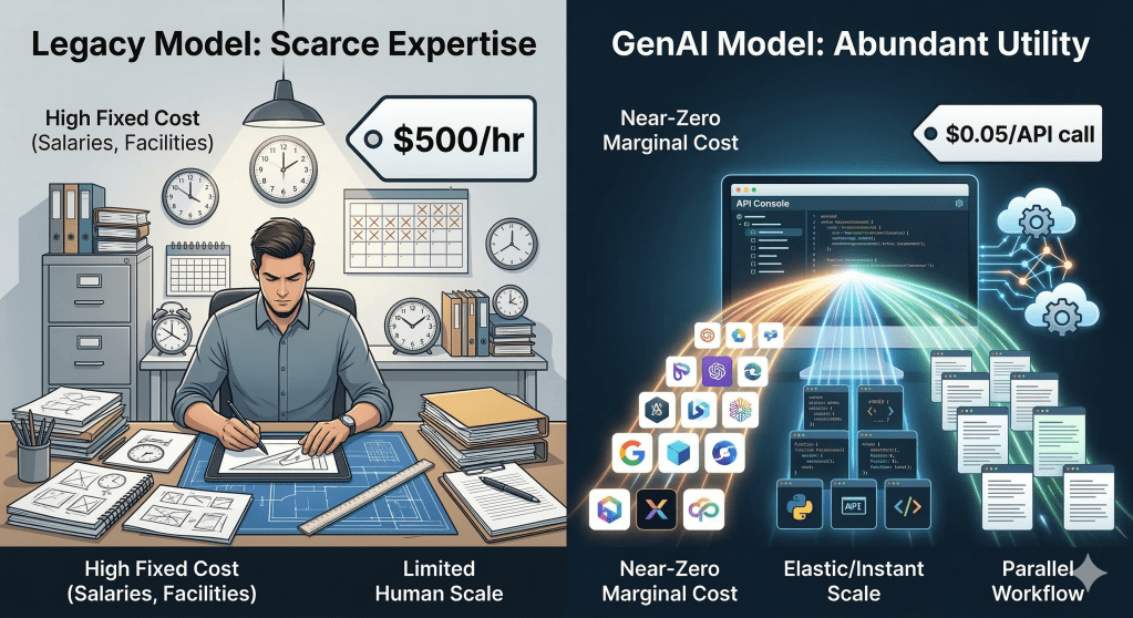 We are standing at the beginning of a fundamental shift in how businesses operate and create value. For the past few years, the conversation around Generative AI has been dominated by awe at its capabilities—writing code, summarizing meetings, or generating marketing copy. But the true impact of GenAI is not just about what it can do; it is about what it does to the cost of doing it.